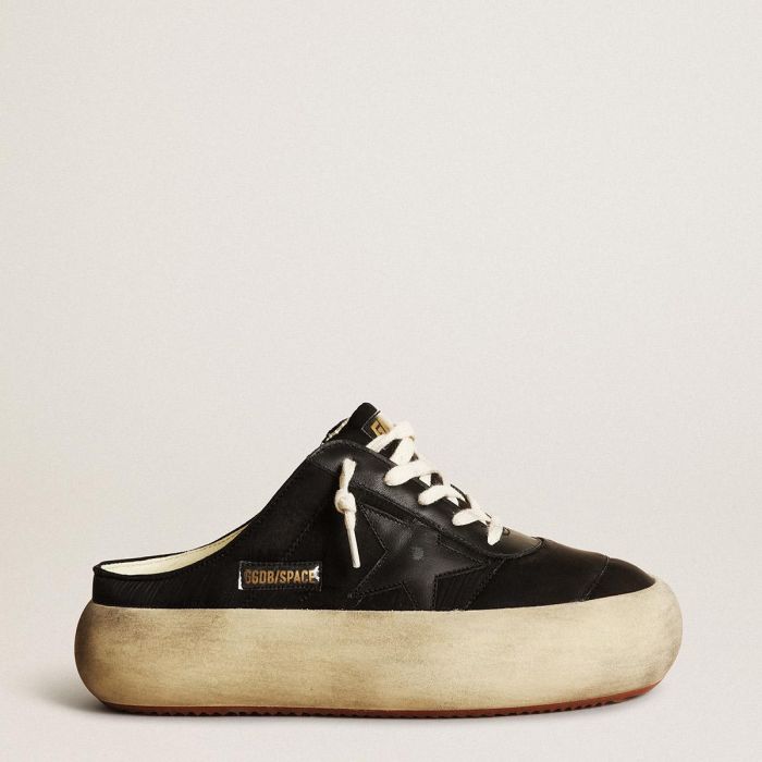 اللحظة الجديدة للابتعاد عن الواقع والتحليق كما لم يحدث من قبل. ملفوفة بتلك الحسية المدهشة من الخفة منذ اللحظة الأولى، مما يجعل هناك متسعًا لأجرأ نسخة من نفسك. أخيرًا تحرير أسلوبك، وتفريغ ذهنك. تتميز أحذية سبيس-ستار بنعل إضافي وحشوة داخلية مبطنة برغوة الذاكرة، مما يضمن راحة لا مثيل لها بدءًا من الخطوة الأولى. تتميز هذه النسخة الصابوت للنساء بجزء علوي من النايلون الأسود مزخرف بإدخالات من الجلد الأسود بما في ذلك النجمة، و بطانة ناعمة من الجلد. الأربطة باللون الكريمي تكمل المظهر.
