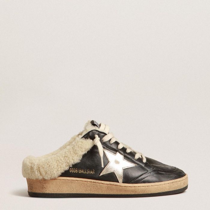 أحذية بال ستار الصنادل للرجال مصنوعة من جلد النابا مع نجمة بلاتينية وبطانة من الفرو الاستثائي