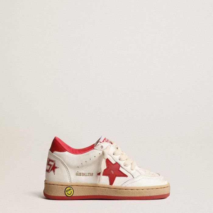 أحلام الثمانينات. تتميز أحذية السنيكرز الخاصة بنا من طراز Ball Star بشعور كلية أمريكية بين تسديدة كرة السلة وركوب اللوح. الإصدار الصغير من هذا الطراز مع الجزء العلوي من جلد النابا الأبيض يتميز بنجمة جلدية حمراء وعلامة على الكعب باللون الأحمر. تضيف تفاصيل الوجه المبتسم على الحافة المحيطة والأربطة بلون كريمي اللمسة الأخيرة: أشياء جميلة لا تخرج أبدًا عن الموضة.