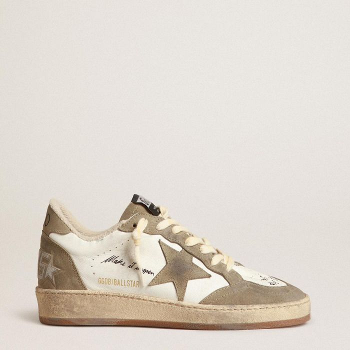 怀旧八十年代。我们的Ball Star系列运动鞋充满美式校园风格,在篮球框与滑板之间捕捉到独特氛围。这款男士鞋款采用白色纳帕皮革鞋面,配有鸽灰色麂皮嵌片,包括星星和后跟标签。对比鲜明的黑色字母图案和奶油色鞋带为其增添了点睛之笔:永恒经典,永不过时的美好设计。