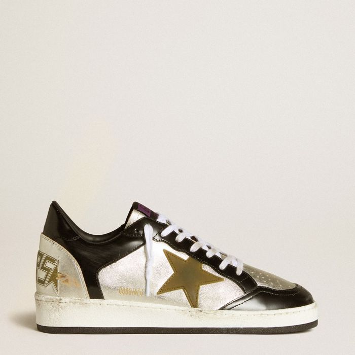 男士银色皮革Ball Star LAB运动鞋,配有棕色皮革星星和黑色后跟标签