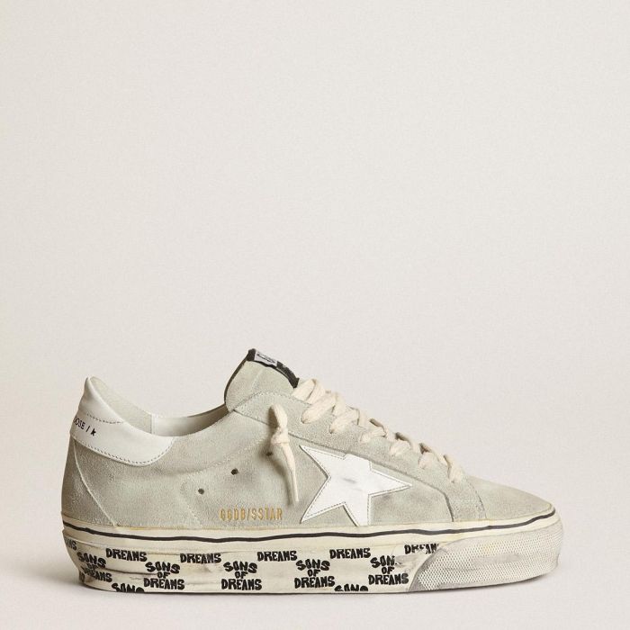 一个永恒的标志,但又在不断演变。在Golden,我们喜欢从新的角度不断改造我们的经典之作。这些Super-Star运动鞋采用冰灰色麂皮鞋面,配有白色皮革星星和后跟标签。包边上的对比鲜明的黑色条纹和字母以及乳白色鞋带完善了整体外观。