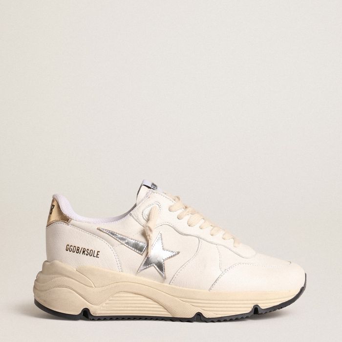 带有银色星星和金色皮革后跟标签的纳帕皮跑步鞋底