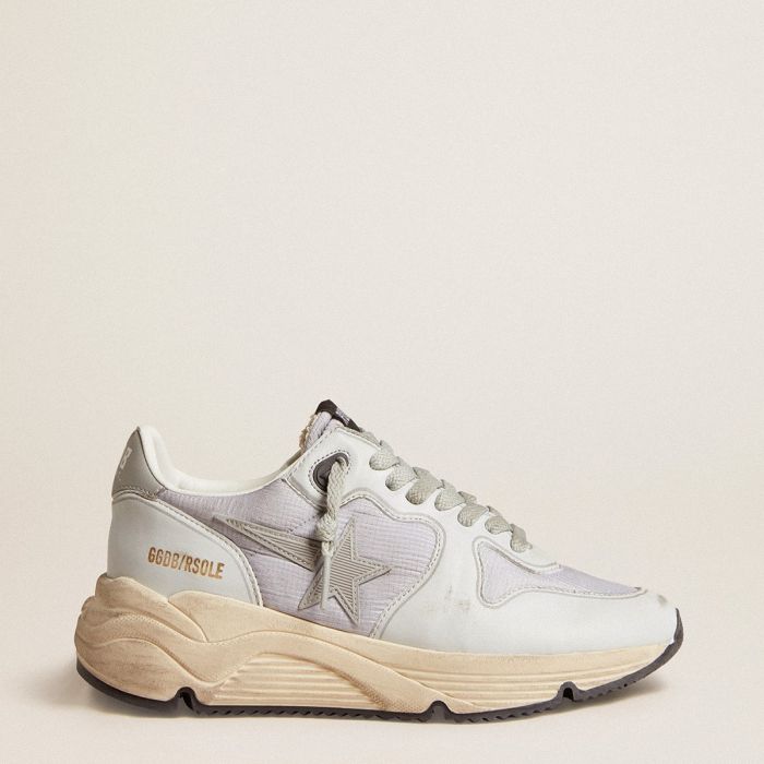 - 银色尼龙鞋面,带有浅蓝色纳帕皮革嵌片