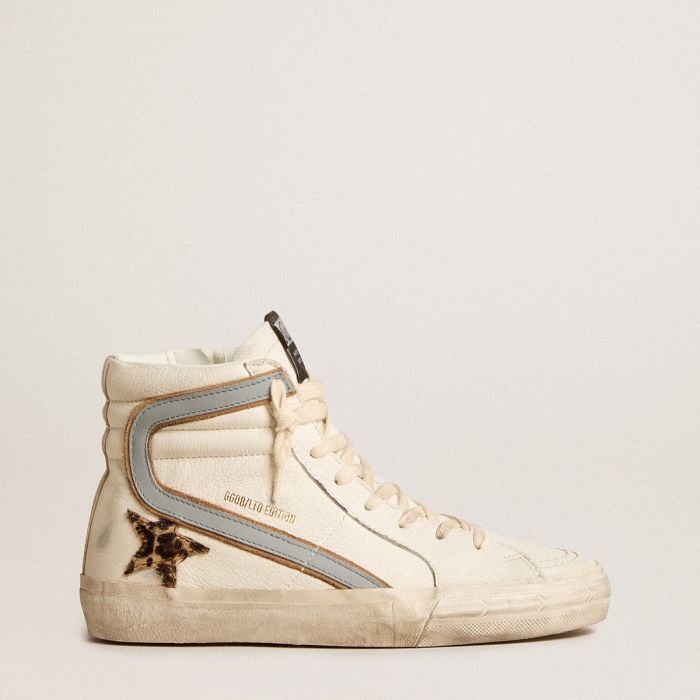 带有豹纹小马皮星星和灰色纳帕闪光的纳帕滑板鞋