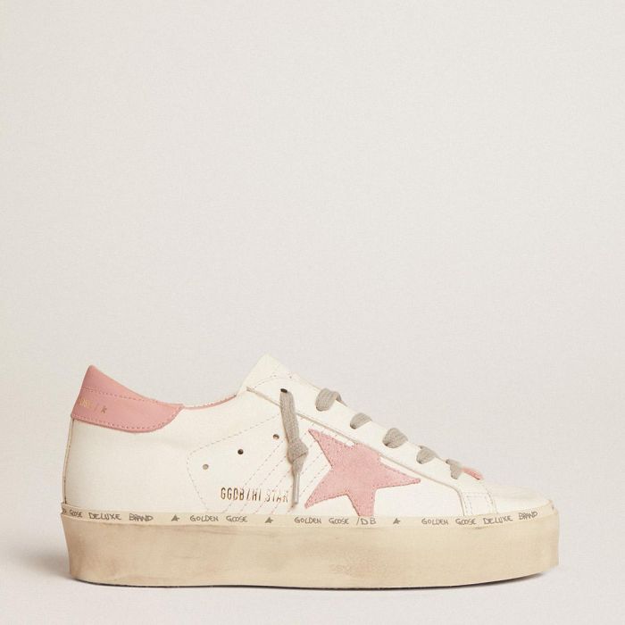 双层高度与标志性设计:这款Hi Star运动鞋灵感源自我们的Super-Star运动鞋,具有双层鞋边,并饰有手写字母。这款白色皮革款式配有旧玫瑰色细节,例如麂皮星星和皮革鞋跟标签。冰灰色鞋带为其增添了最后的点缀。