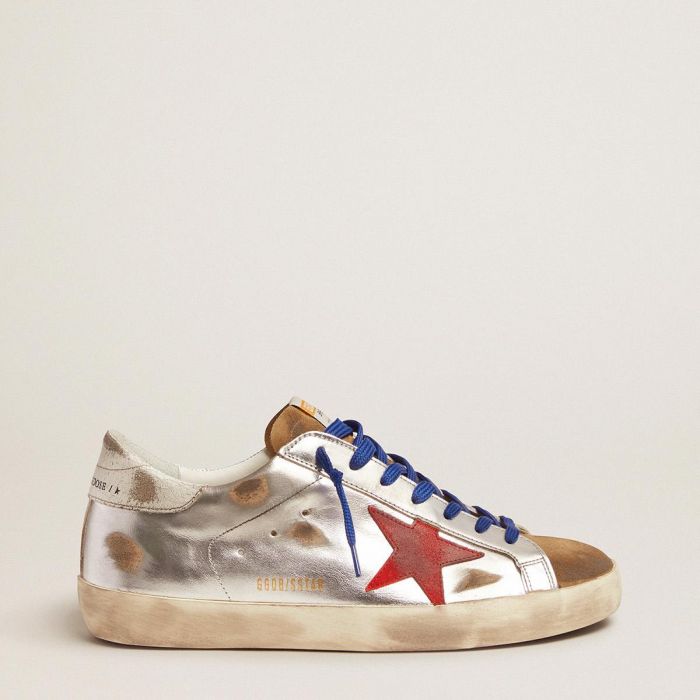 男士Super-Star运动鞋,采用层压皮革和麂皮材质,配有红色星星装饰。