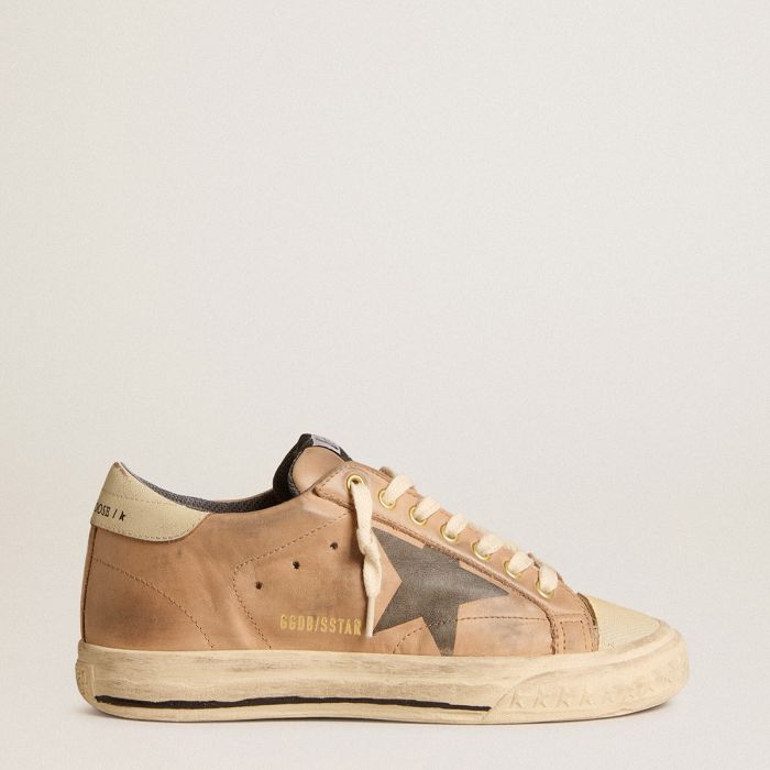 米色磨砂皮男士Super-Star,带有黑色印花星星和皮革后跟标签