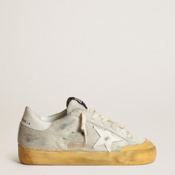 男士Super-Star Penstar运动鞋,米白色小马皮鞋面,配有白色皮革星星和后跟标签
