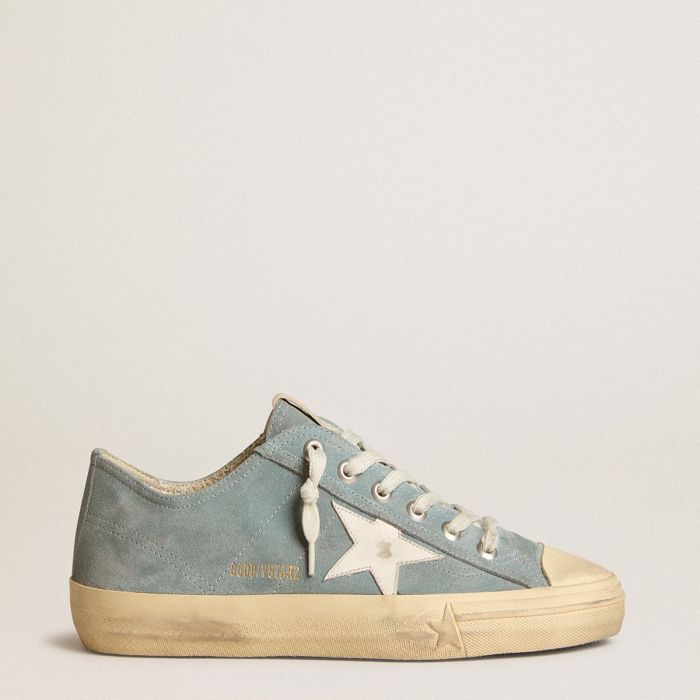 银蓝色绒面革V-Star,带有白色皮革星星装饰。