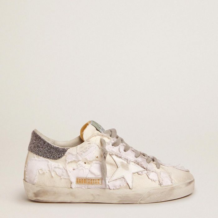 A timeless icon yet one that's constantly evolving. At Golden, we love taking our classics and reworking them all the time, always from a new angle. This time the focus is on sustainability. This Super-Star model features an upper made from a patchwork of canvas offcuts, giving a 3D effect. The lining is made of recycled cotton canvas and the tread is in recycled rubber and coir, a material also used for the insole. The black Swarovski crystal heel tab adds the finishing touch.