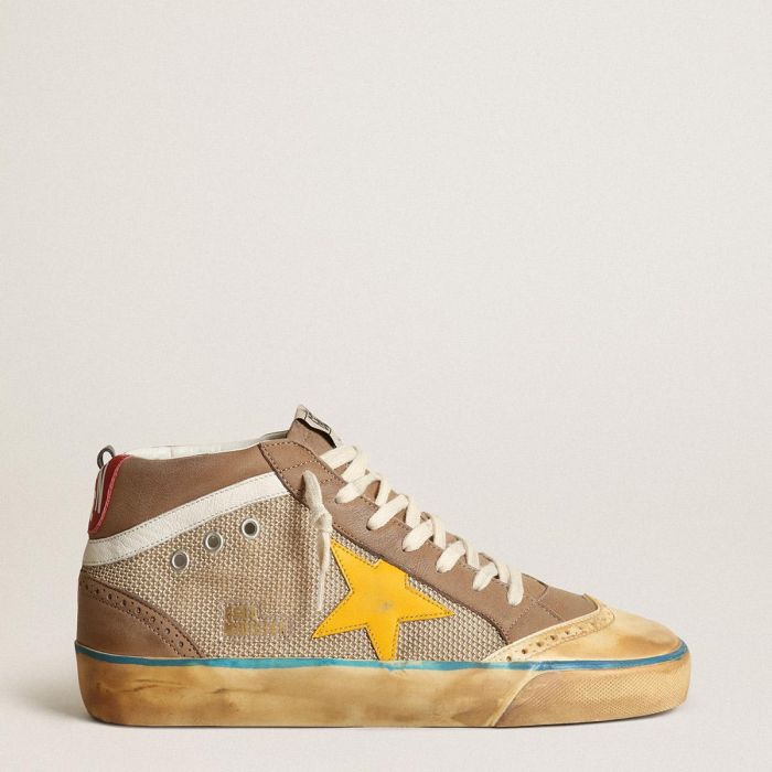 Men's Mid Star in beige mesh and dove gray nubuck and yellow star