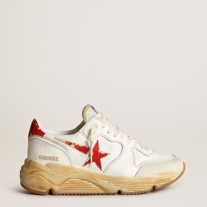 Urban style and a spirit of craftsmanship are combined in our Running Sole sneakers: the ideal companion for your metropolitan adventures. This model features a white nappa leather upper with a star and heel tab in leather with red digital print. The white nylon tongue and cream-colored laces add the finishing touch.