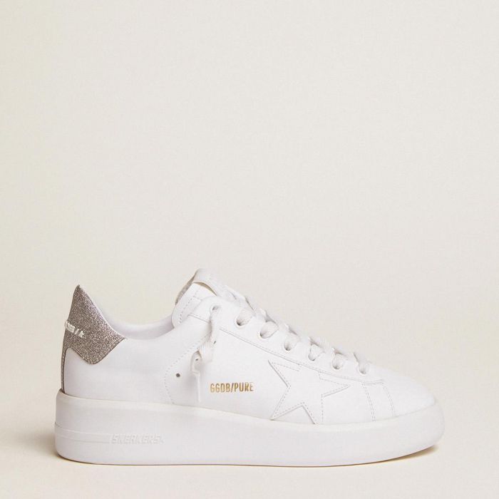 जब आकार की न्यूनता विवरणों की ताकत से मिलती है: हमारे प्यूरस्टार स्नीकर्स अपनी झटका-अवशोषित करने वाली तकनीक के कारण सरल शैली को अत्यधिक सुखद बनाते हैं। यह सफेद चमड़े का मॉडल टोन-ऑन-टोन चमड़े के स्टार और चांदी के माइक्रो-ग्लिटर हील टैब से सुसज्जित है। सफेद शू लेस इस दिखावट को पूरा करते हैं।