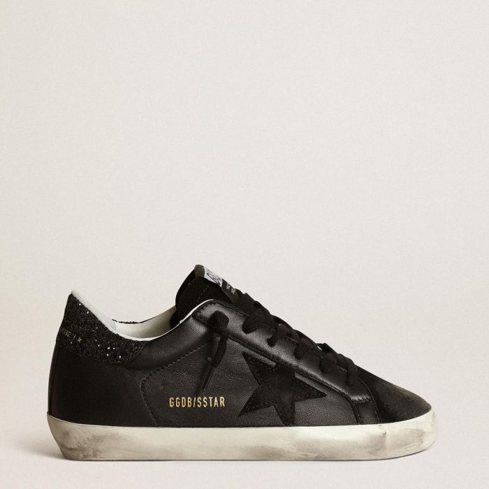 एक समयशील आइकन जो लगातार विकसित होता रहता है। गोल्डन में, हमें अपने क्लासिक्स को लेकर उन्हें हर समय नए तरीके से दोबारा तैयार करना पसंद है। ये सुपर-स्टार स्नीकर्स, जिनमें काले नापा चमड़े का ऊपरी हिस्सा है, काले सुएड स्टार और काले ग्