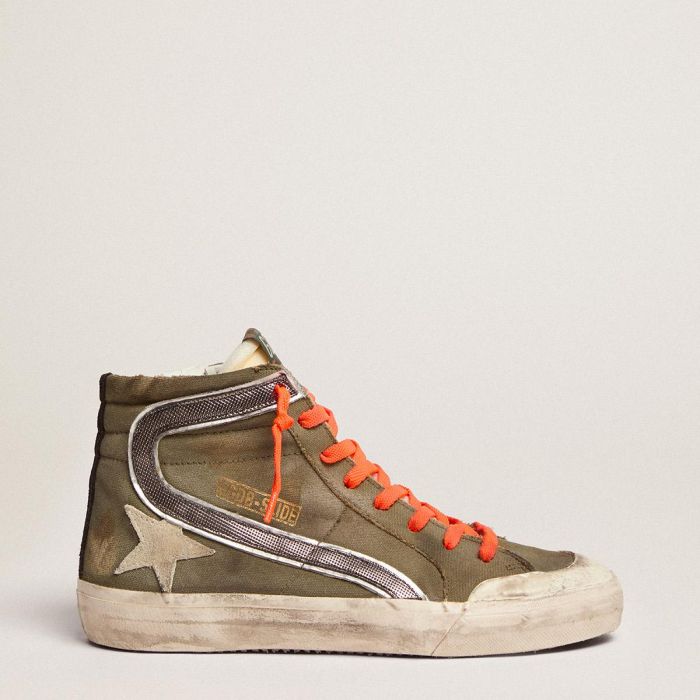 स्केटिंग की आत्मा, आकर्षक अंदाज। हमारे स्लाइड स्नीकर्स आपको सीधे वेनिस बीच पर ले जाते हैं, एक ओली और किकफ्लिप के बीच। आर्मी हरे कैनवास के ऊप