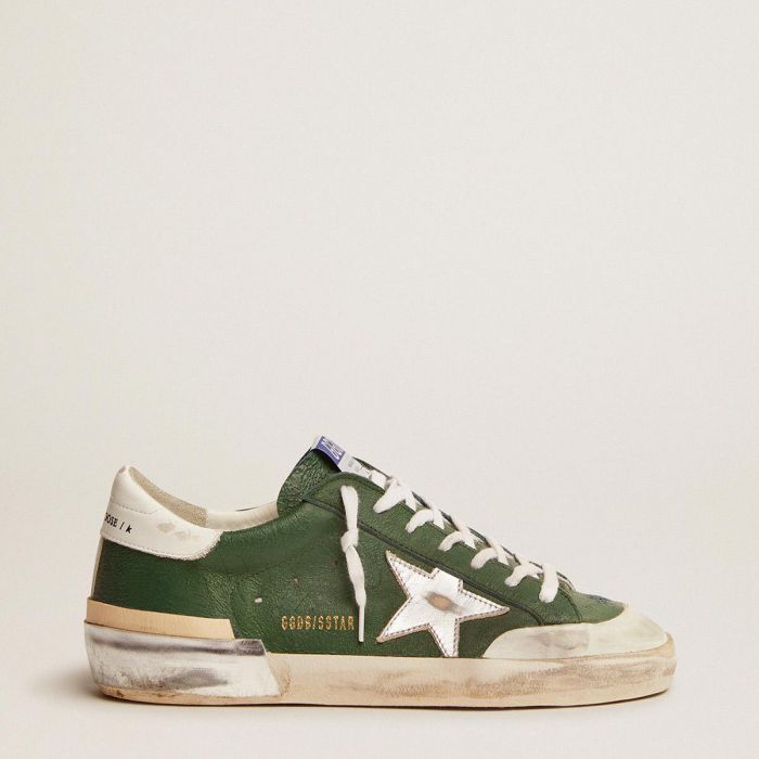 एक समयरहित आइकन जो लगातार विकसित होता रहता है। गोल्डन में, हमें अपने क्लासिक्स को लेकर बार-बार नए कोण से पुनः तैयार करना पसंद है। ये हरे चमड़े के सुपर-स्टार स्नीकर्स में मल्टी-फॉक्सिंग है, जो जटिल शिल्प कौशल का प्रतीक है। इसमें अतिरिक्त फॉक्सिंग जोड़ा जाता है, जो अपने पहल