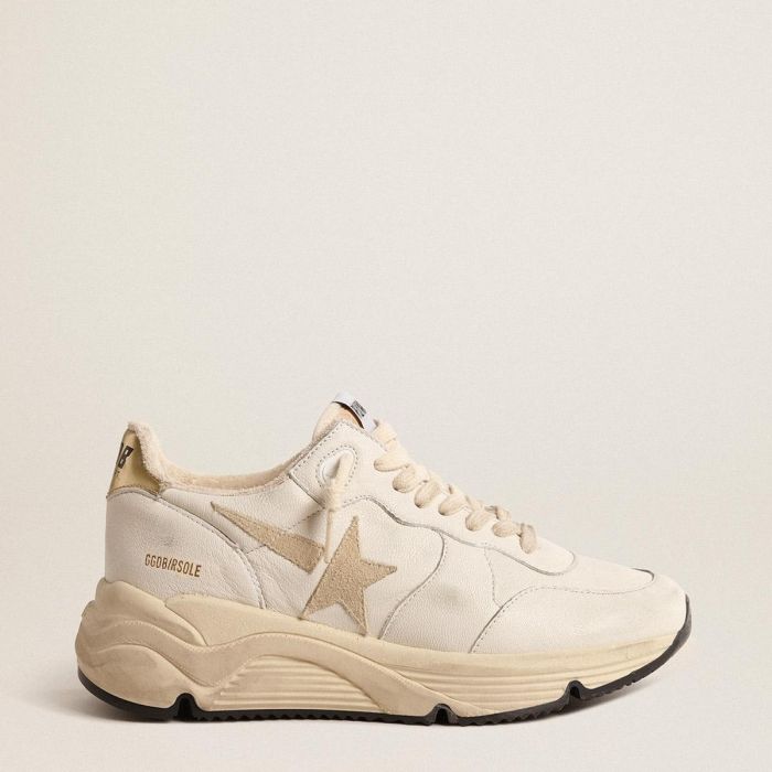 都市風格與精湛工藝的精神融合在我們的Running Sole運動鞋中:這是你都市冒險的理想伴侶。此LTD款式採用白色納帕皮革鞋面,並配有米色麂皮星星及金色金屬皮革鞋跟標籤。桃色尼龍舌頭和奶油色鞋帶更添完美細節。