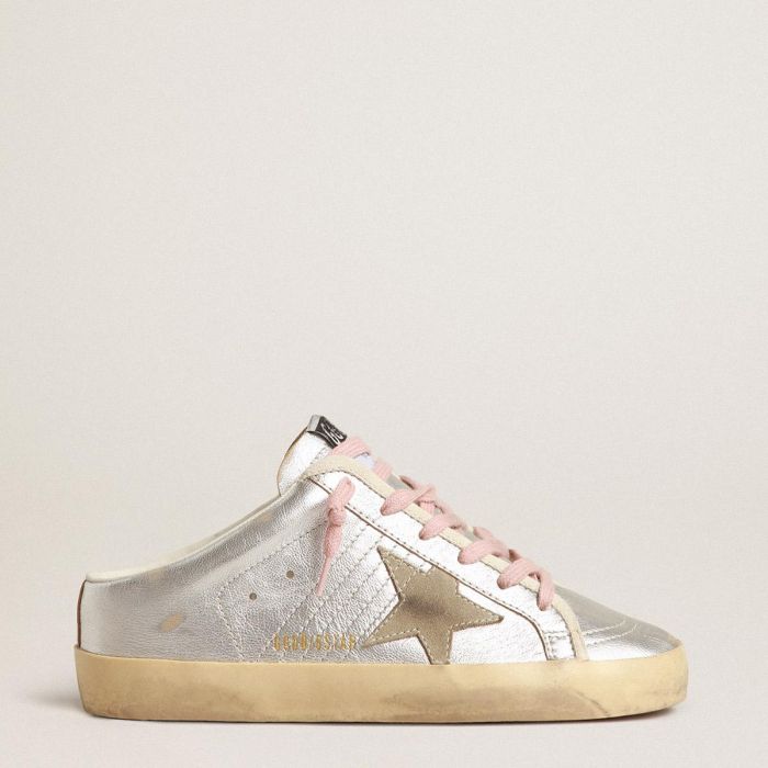 当社の象徴的なスニーカーの新しいサボバージョン:これらのスーパースターは、シルバーのメタリックレザーのクラシックなアッパーとハトグレーのスエードの星が特徴です。アイステイ部分のバター色のヘリンボーン織りコットンのトリムとピンク色のシューレースがそのルックスを完成させています。
