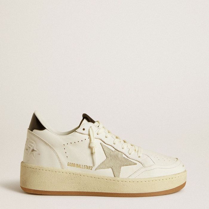 アイスグレーのスウェードの星と光沢のあるブラックレザーのヒールタブ付きウィメンズボールスター