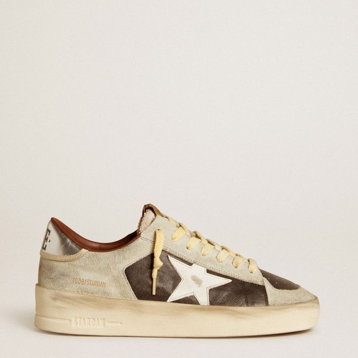 가죽 스타와 메탈릭 힐 탭이 돋보이는 스웨이드와 가죽 소재의 남성용 스타단 스니커즈