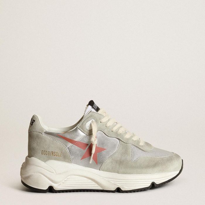 도시적인 태도를 가진 활동적인 영혼: 러닝 솔 스니커즈는 우아한 스트리트웨어 룩에 완벽한 스타일입니다. 이 버전은 은색 라미네이트 가죽 어퍼와 아이스 그레이 스웨이드 삽입물로 구성되어 있으며, 오래된 장미 프린트 스타와 라이트 실버 메쉬 토로 강조됩니다. 그리고 연한 크림색 끈이 마무리 터치를 더합니다.