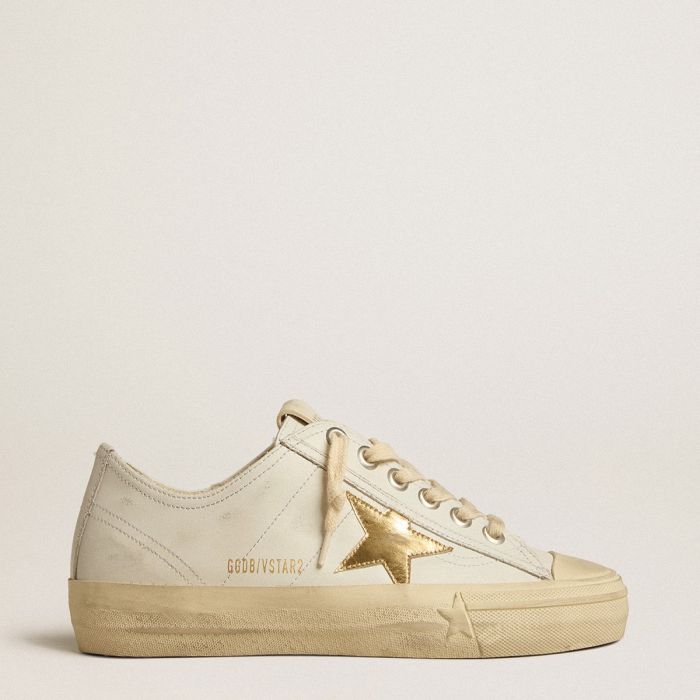 白色皮革搭配金色金屬皮革星星的V-Star鞋款