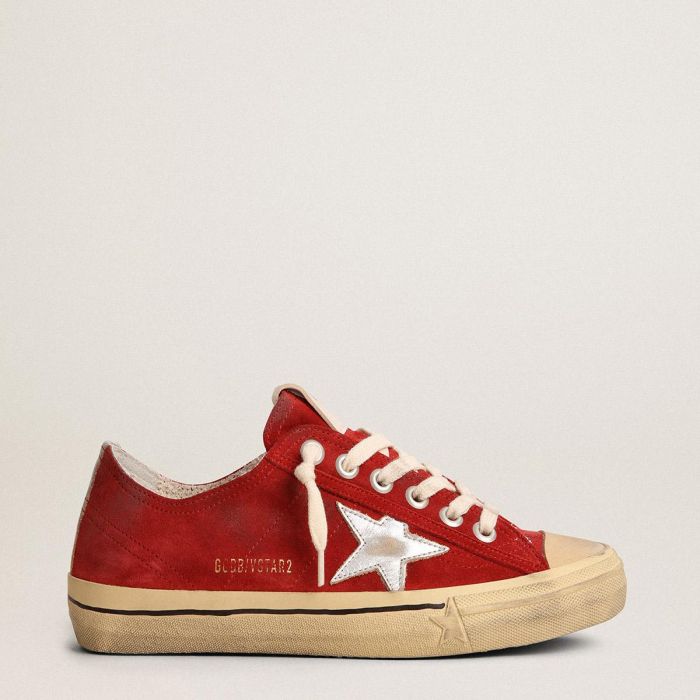 暗紅色絨面革搭配銀色星星的男性V-Star LTD鞋款